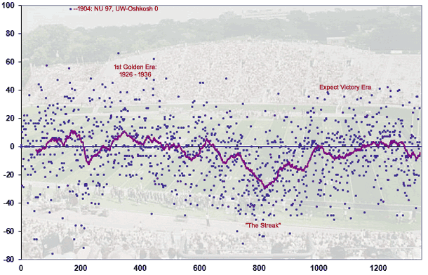 top of the graph shows NU's winning percentage for each year.