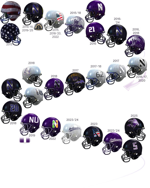 For example, the standard helmet (1981-present) has had white, purple,